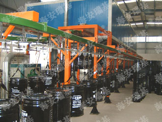 連續生產的通用式電泳涂裝設備,工件是借助于懸掛輸送機邊續不斷的進放電泳槽中進行的電泳涂漆的,通常與漆前表面處理烘干等設備組成一條連續的涂裝生產線,此類適合于大批生產.