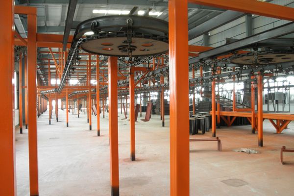 高溫鑄造車間,剛成型的高溫鑄件通過懸掛鏈快速轉(zhuǎn)移至冷卻區(qū),減少工人暴露于高溫環(huán)境的時間。